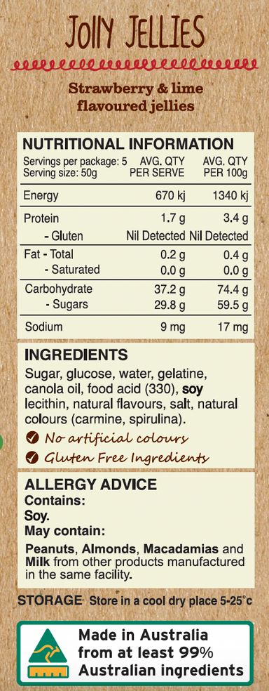 You'll love our scrumptious, sweet, soft Jolly Jellies! With a delicious combo of lime & strawberry flavours (all natural of course!), these je...